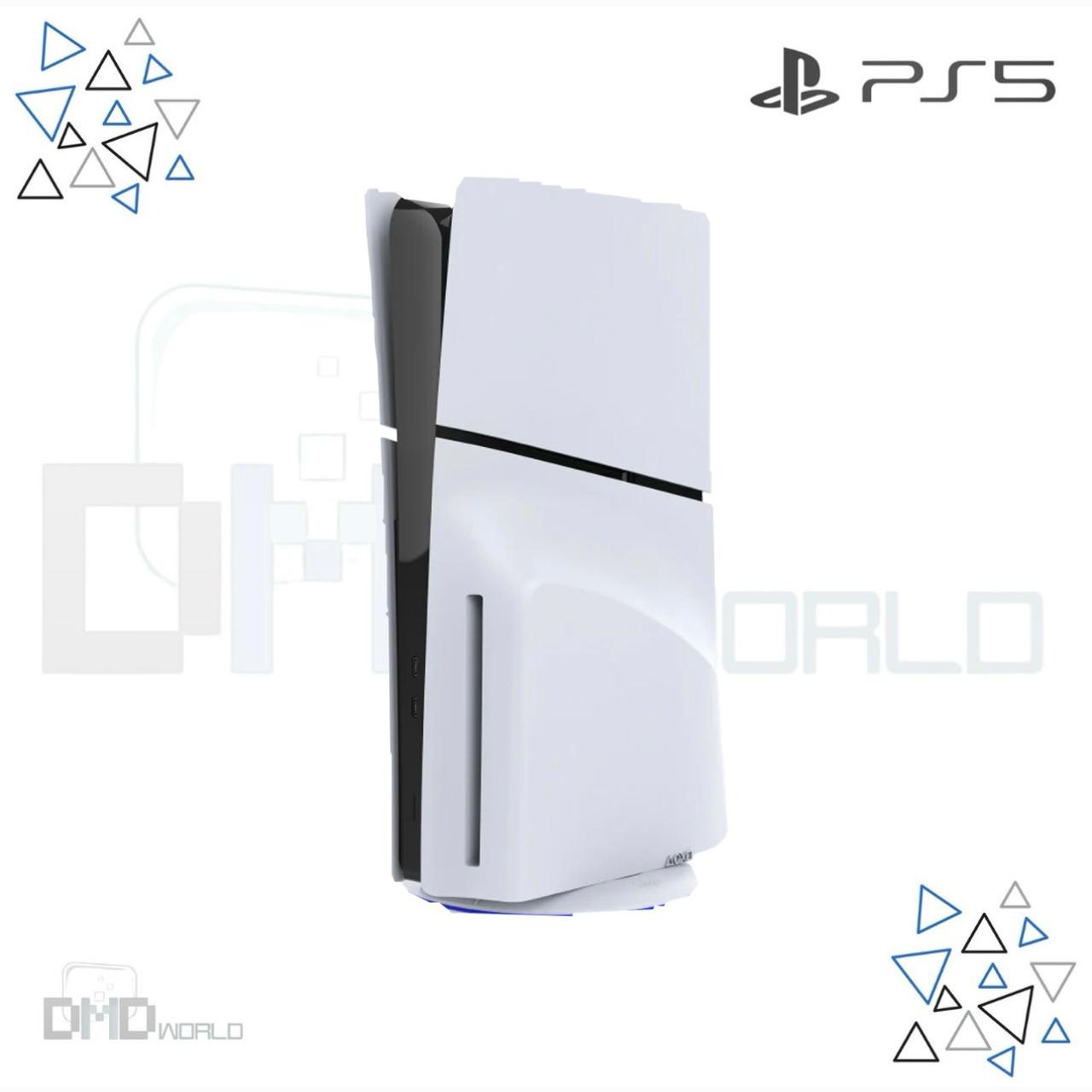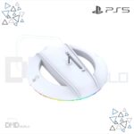 A sleek vertical stand designed for the PS5 Slim, featuring built-in luminous RGB lighting, a stable anti-slip base, and a modern space-saving design that securely holds your console while enhancing your gaming setup with stylish ambient glow.