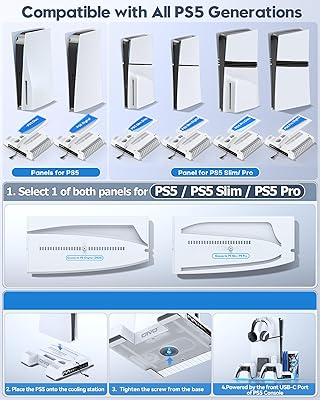 - All-in-one PS5 stand with cooling fan and controller charging station