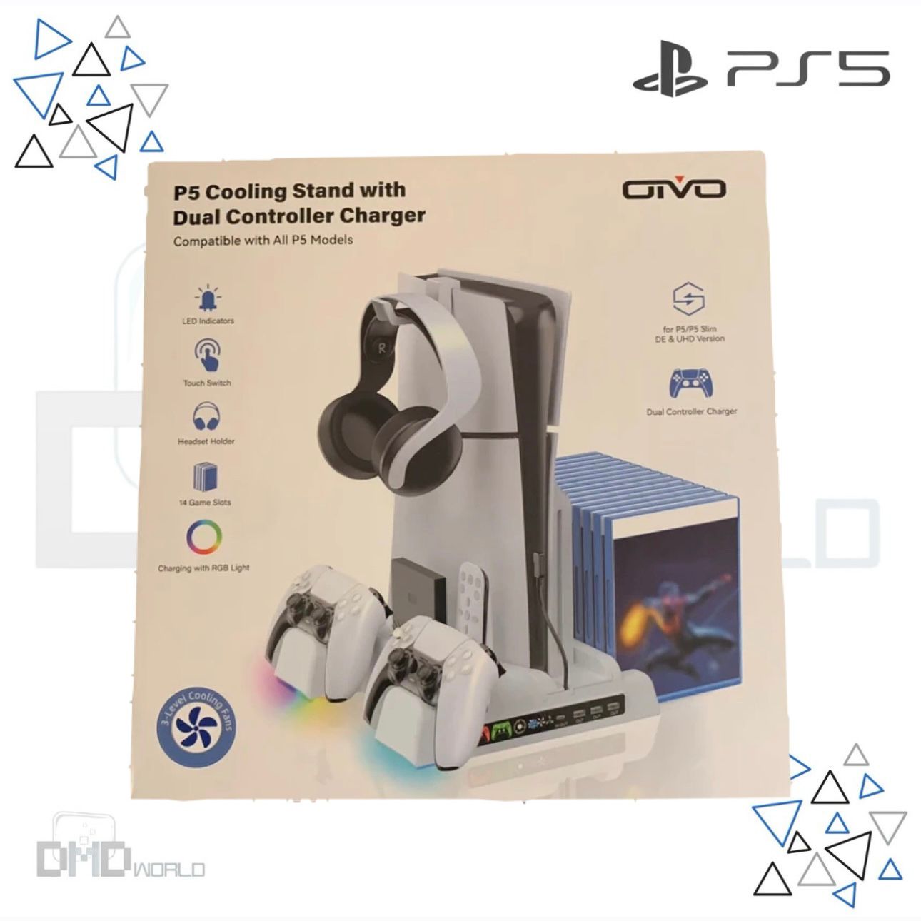 • Easy to use & Excellent Space Management: The PS5 charging dock with efficient cooling fans and dual PS5 charger, ps5 slim cooling fan, LED charging indicators. Hold 14 ps5 games disc, ps5 headset wireless,screw storage, ps5 slim adaper, ps5 media remote, ps5 hard drive external, ps5 cooling system all-in-one play station 5 stand, helping organize your Play Station 5 accessories.
