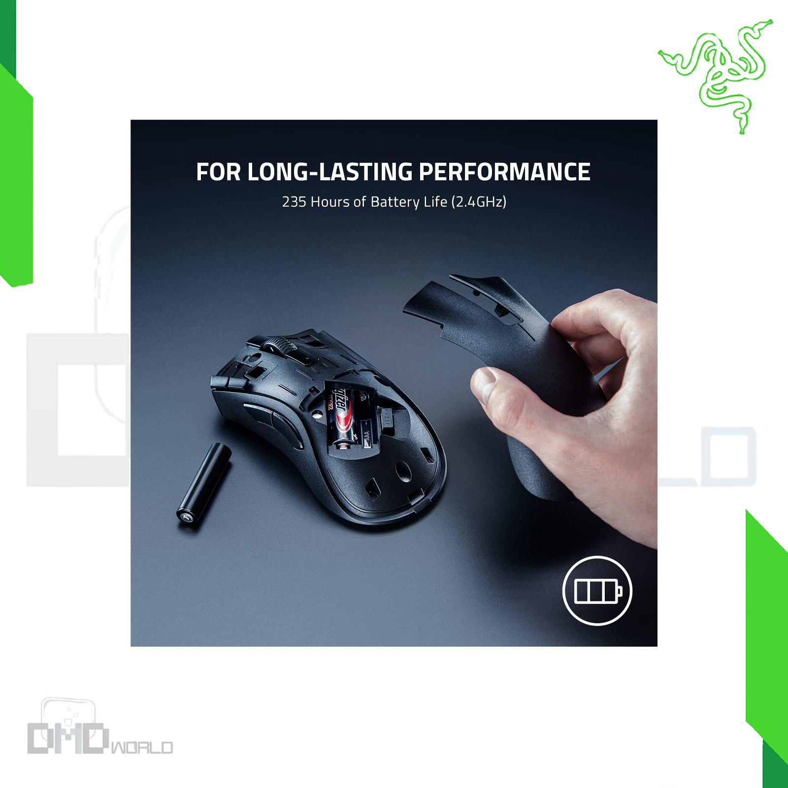 - Long Battery Life: With up to 235 hours of seamless low-latency gaming with Razer HyperSpeed Wireless (2.4GHz), and up to 615 hours with Bluetooth, the mouse can go for ages before its battery needs replacing